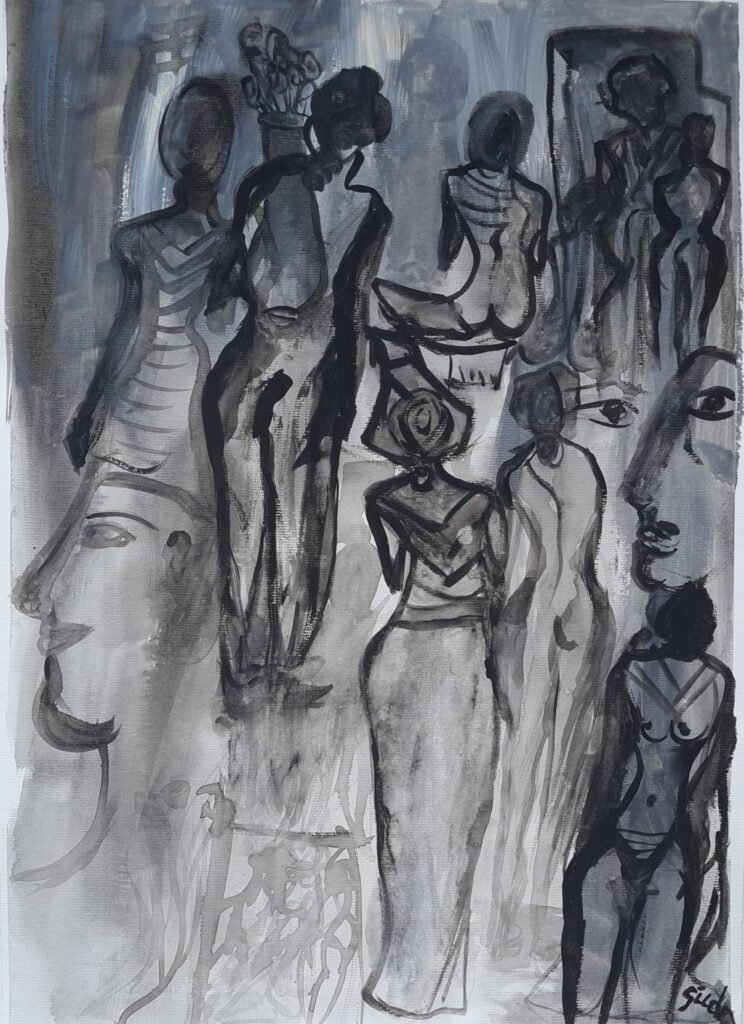 Dedico-me à pintura há mais de 15 anos, explorando temas ligados à identidade feminina, à força das mulheres do Vale do Jequitinhonha e às questões sociais e ambientais que moldam nossa cultura.