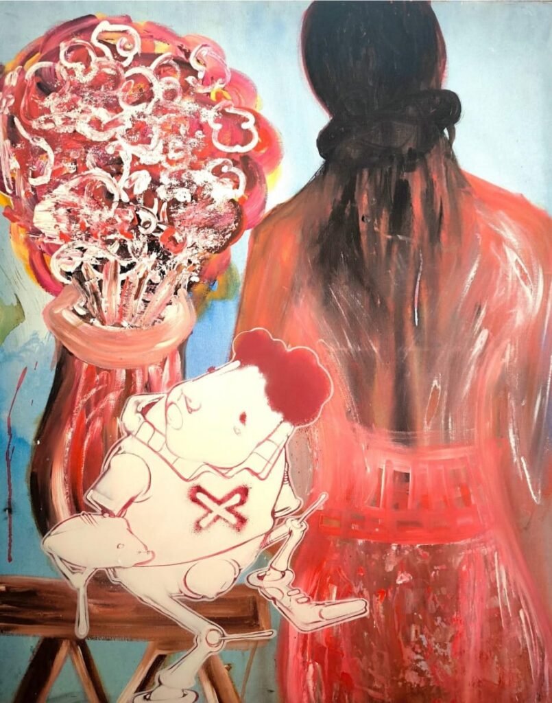 O ateliê também é um espaço vivo de trocas, onde recebo artistas em residência para experimentações coletivas e desenvolvimento de novas técnicas artísticas.Esta série desenvolvi uma colab com o artista e grafiteiro residente em São  Paulo, Alex Ornest.