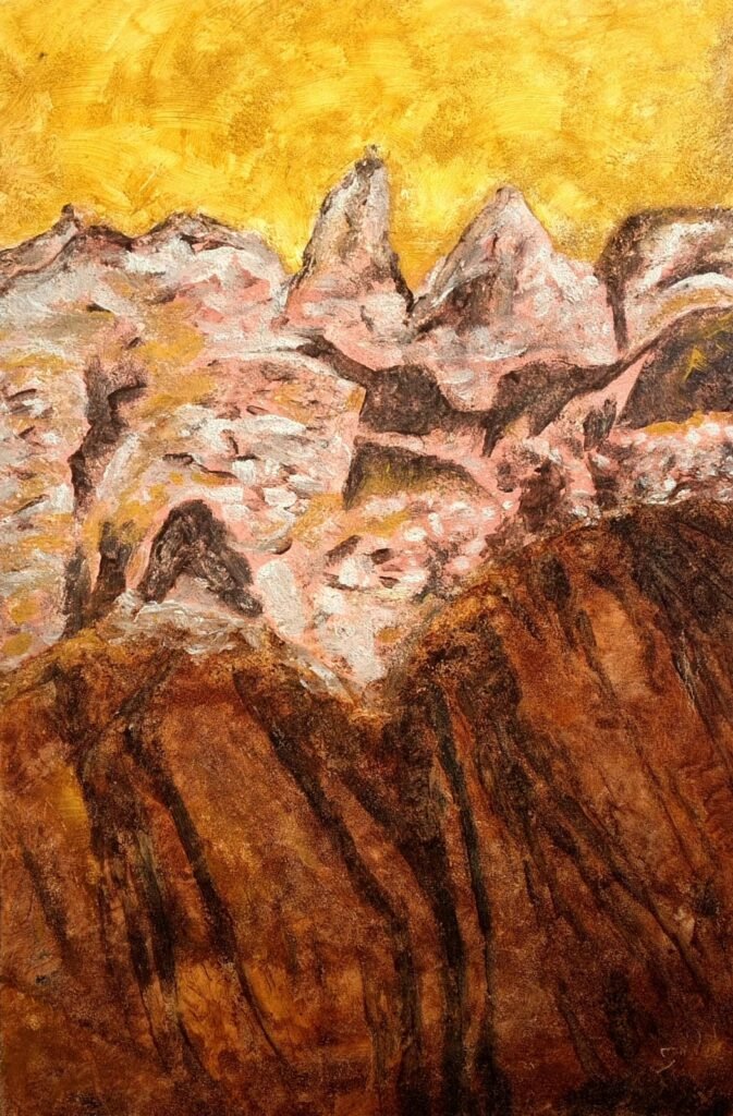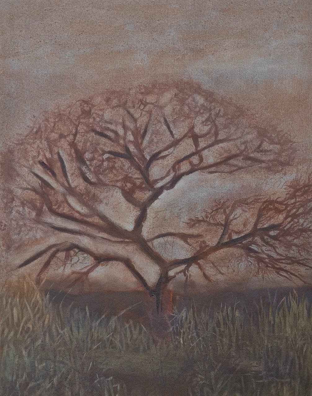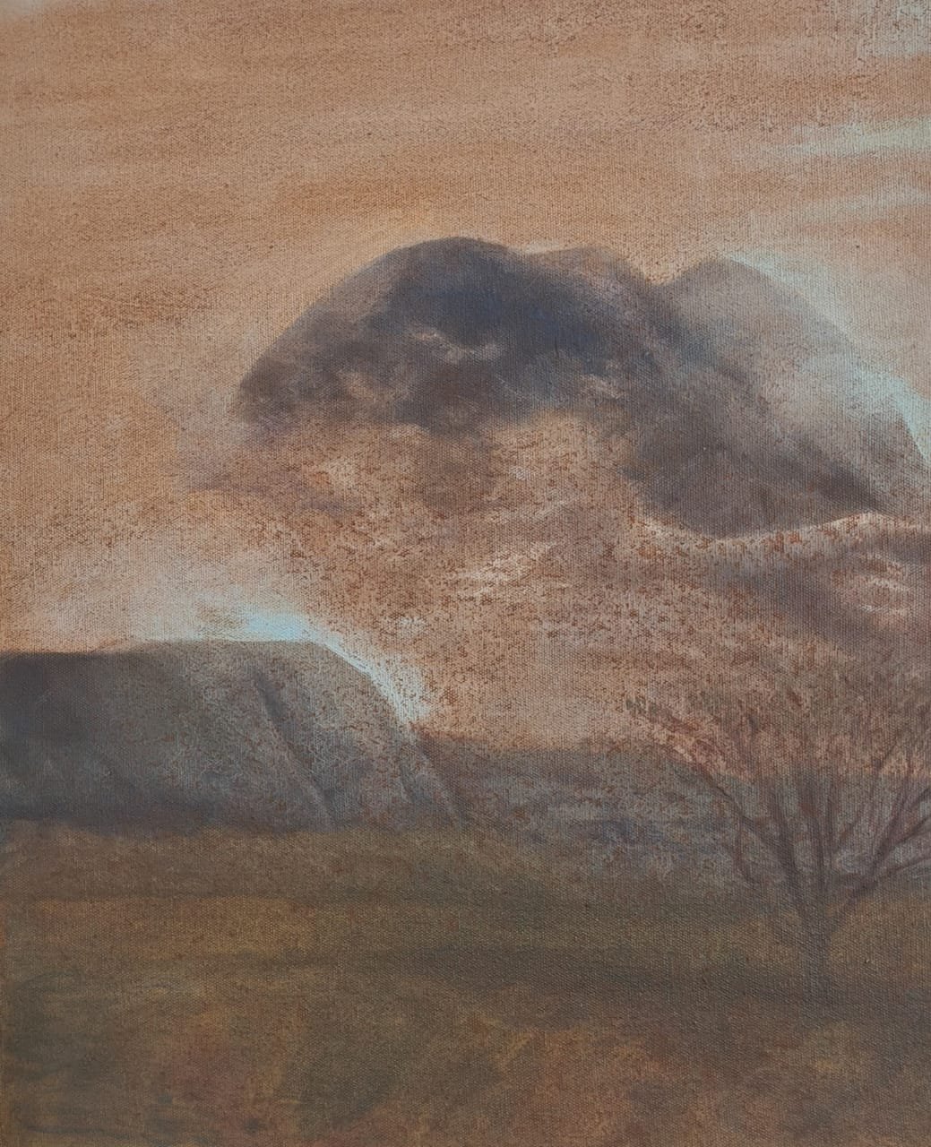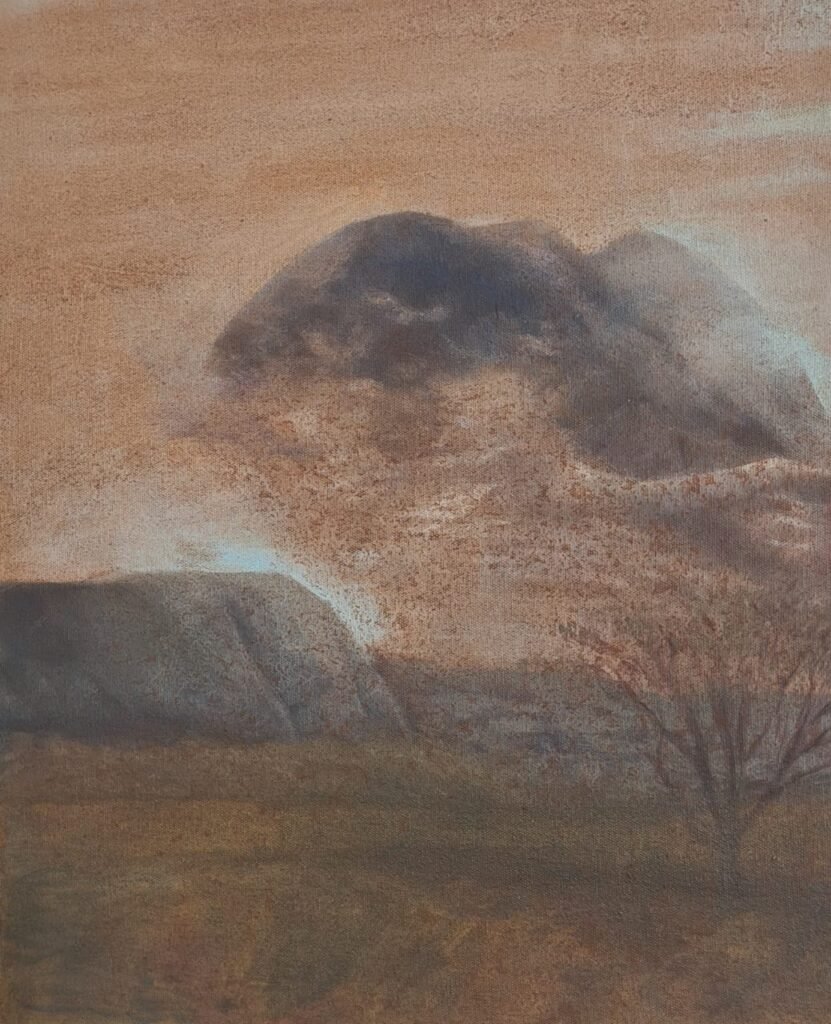 No meu ateliê junto à natureza, desenvolvo pigmentos minerais, reutilizo materiais da construção civil e busco inspiração na paisagem local — entre a fauna, a flora e a vida cotidiana.